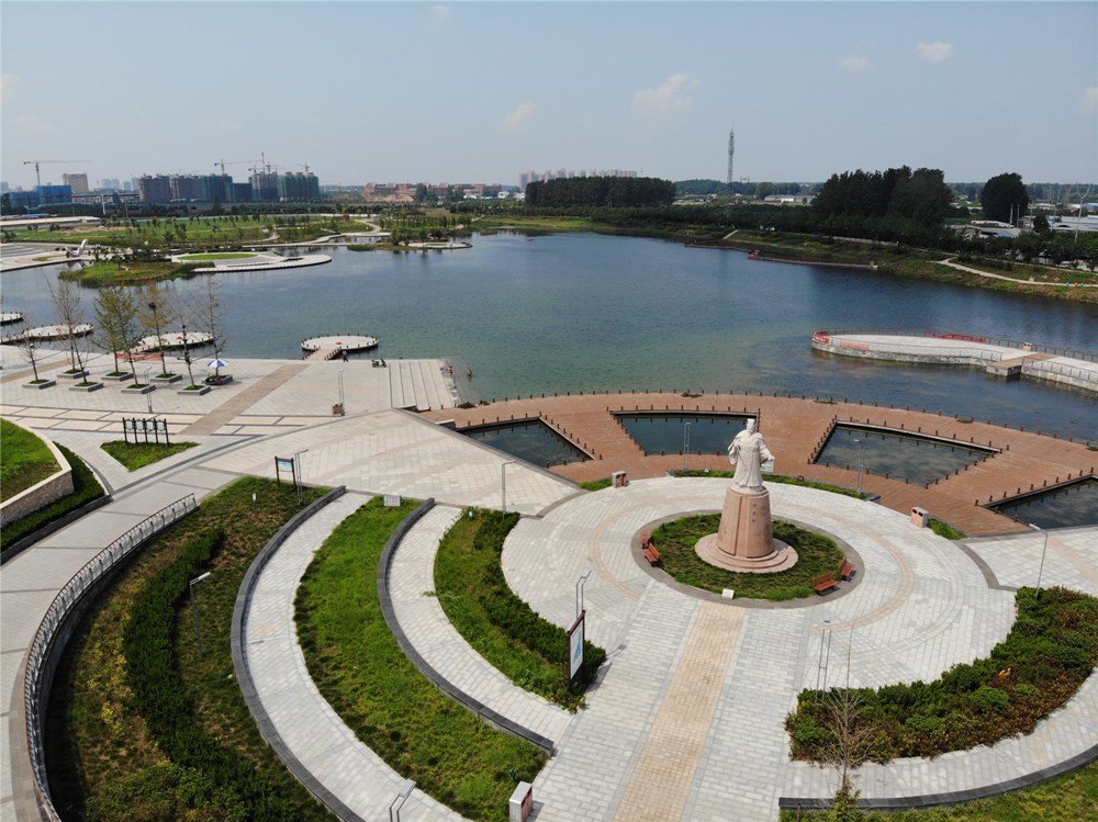 許昌市清泥河流域綜合治理工程位于許昌市,是許昌水生態(tài)文明建設(shè)9項(xiàng)大型示范工程之一,也是中心城區(qū)水系連通示范工程建設(shè)主要內(nèi)容,包括清泥河、運(yùn)糧河、靈溝河、幸福渠及東支和連通渠,治理總長度38km,工程集防洪除澇、生態(tài)修復(fù)、濱水環(huán)境提升為一體,通過雕塑、景石、亭廊和橋梁等體現(xiàn)以三曹七子為代表的漢魏詩歌文化,營造親水空間,開啟“寄情詩歌、談笑古今”的許昌三國水文化之旅。2017年4月,許昌市成為河南省第一個(gè)、全國第二個(gè)通過驗(yàn)收的“全國水生態(tài)文明城市”。