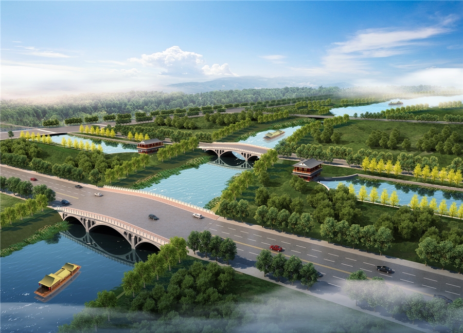 鄭東新區(qū)十八里云溪項目位于鄭東新區(qū)科學谷,該工程為河南大運河古汴河鄭東新區(qū)段,并自西向東橫穿鄭開雙創(chuàng)走廊,兩者有機融合,在沿線形成“一廊、一鎮(zhèn)、五園”空間結(jié)構(gòu)布局。治理范圍西起賈魯河京港澳高速,東至萬三公路橋,總長12.43km。工程主要布局為“1河、2水源、3閘、1堰、1湖、8島、1倒虹、1退水、6碼頭、1生態(tài)”。工程建成后,水域面積79.06萬㎡,總庫容152萬m³,具有排澇、連通輸水、調(diào)蓄、灌溉、通航、生態(tài)景觀、旅游、傳承文化等功能,以實現(xiàn)聯(lián)系千年水脈,重塑運河文明,再現(xiàn)“古水流香,汴水秋生,煙柳花開、曲折蜿蜒”意境的設(shè)計效果,對于支撐國家大運河文化帶建設(shè),同時帶動科學谷經(jīng)濟發(fā)展等方面具有十分重要的作用。