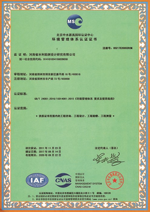 環(huán)境管理體系認(rèn)證證書