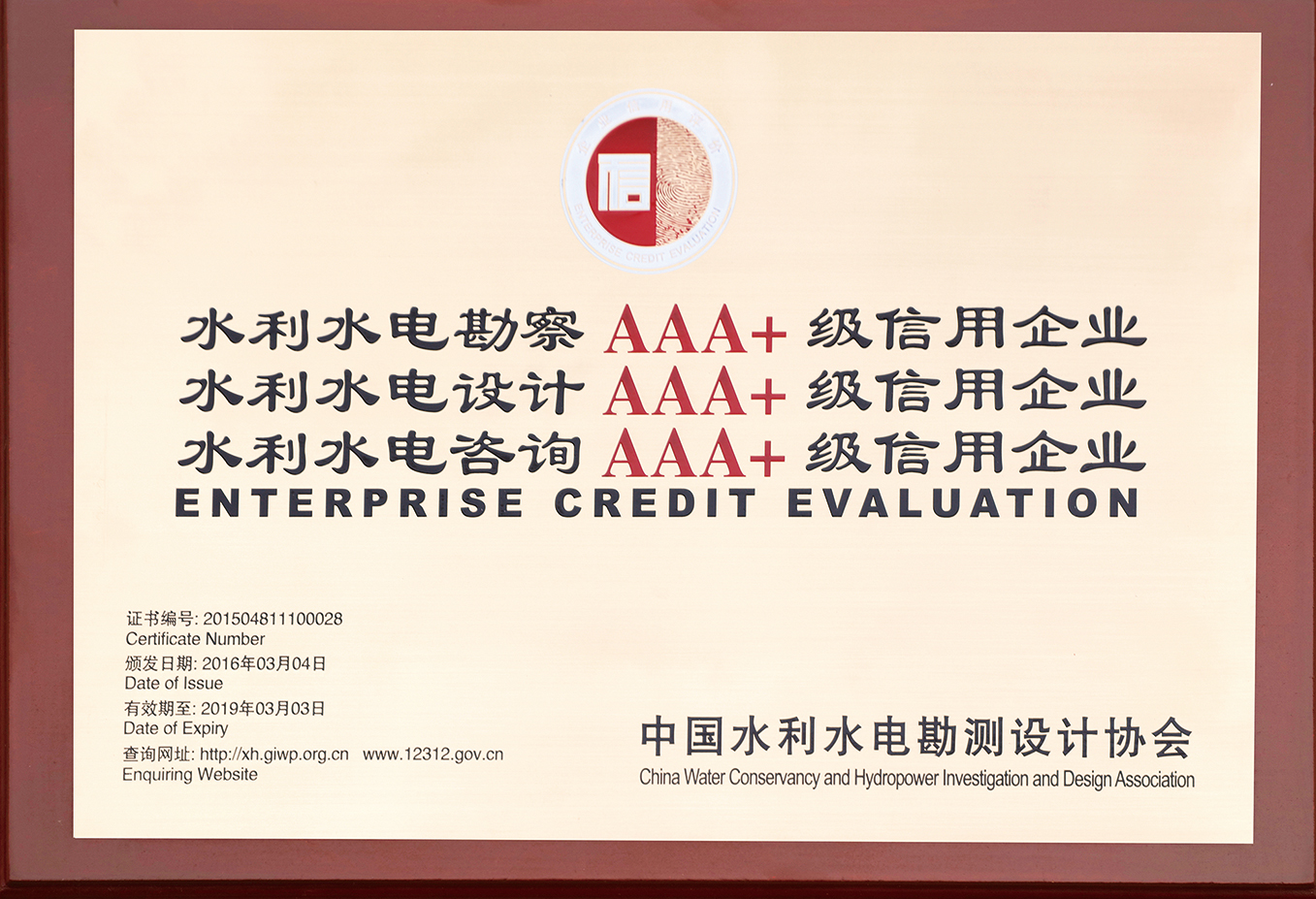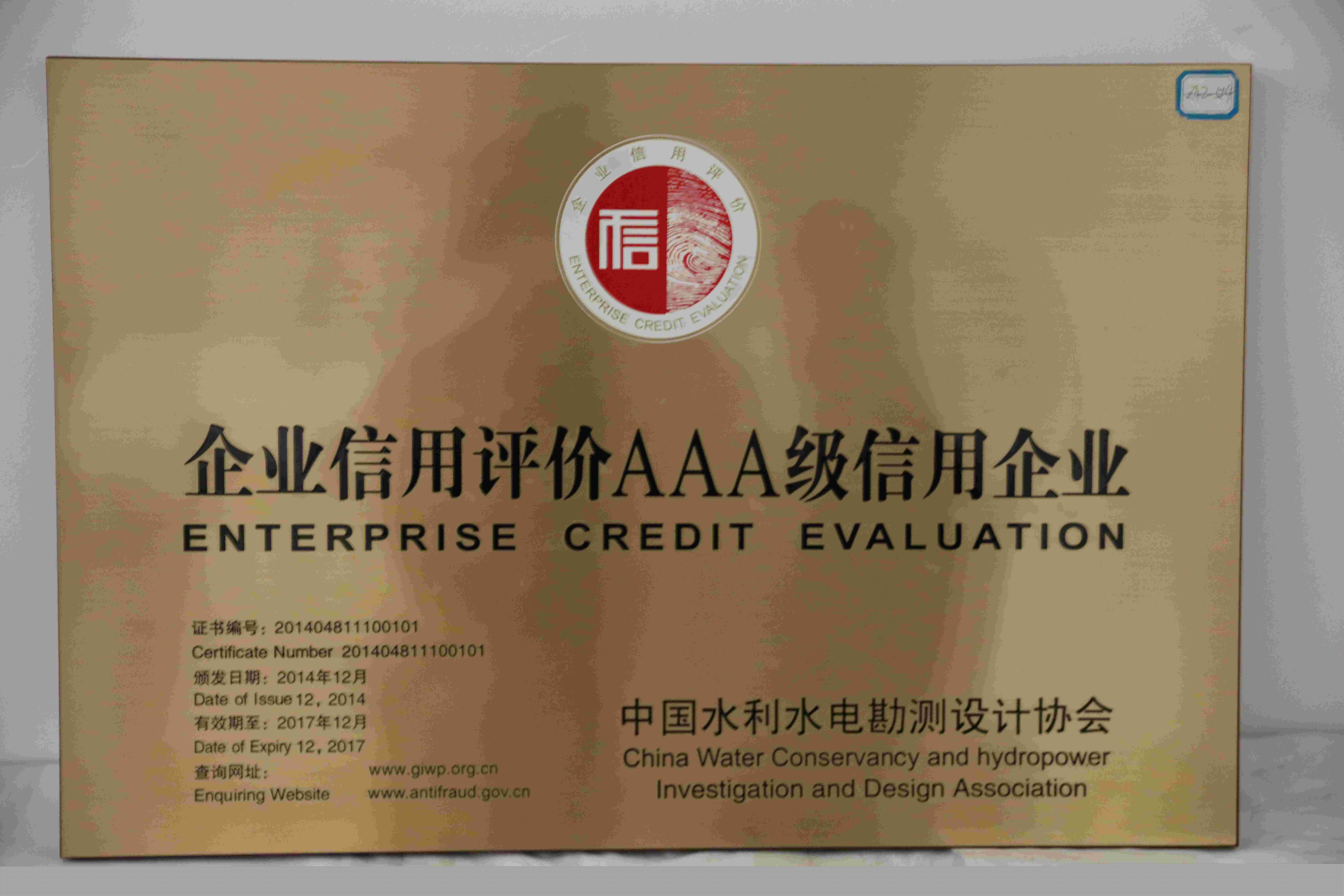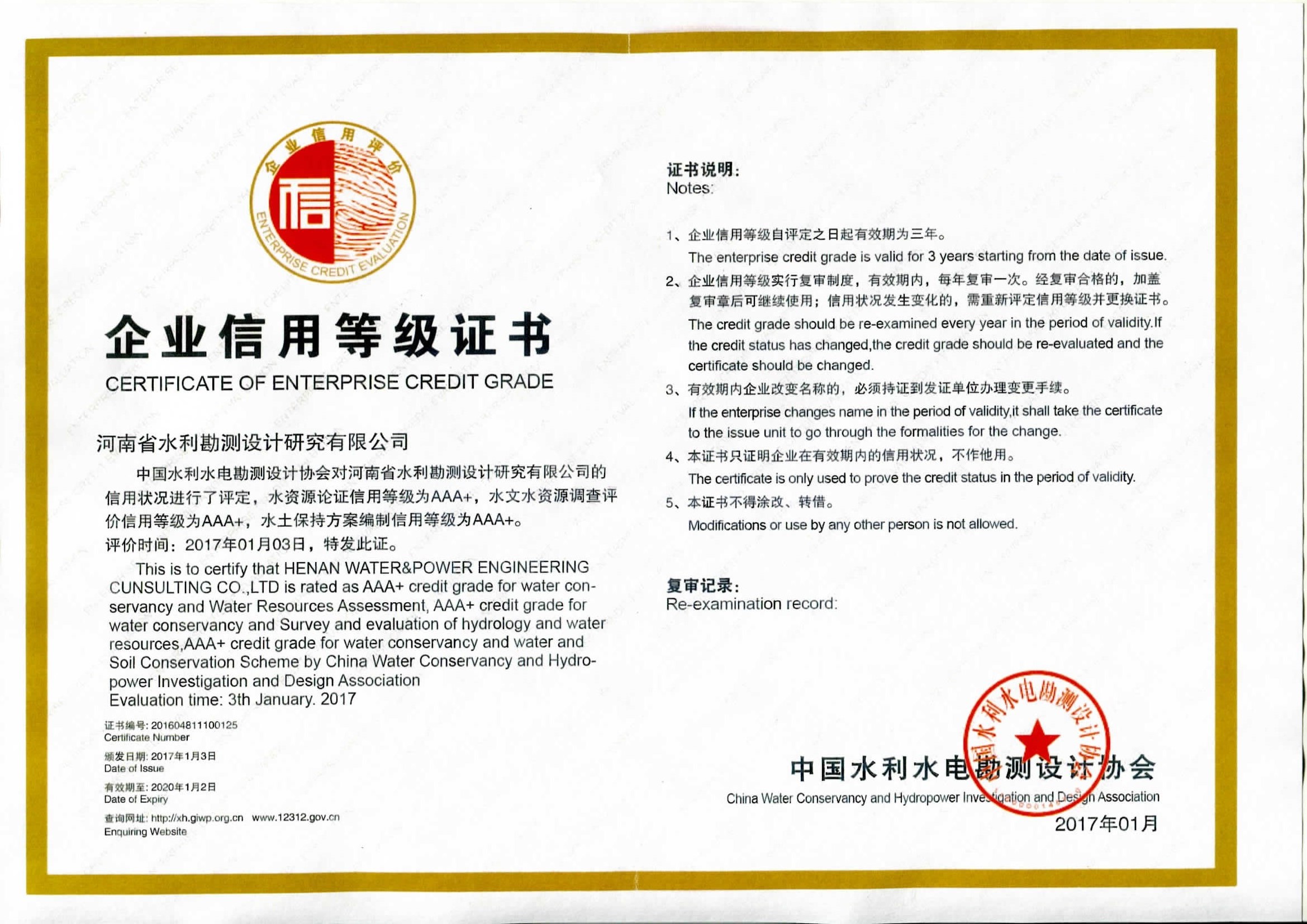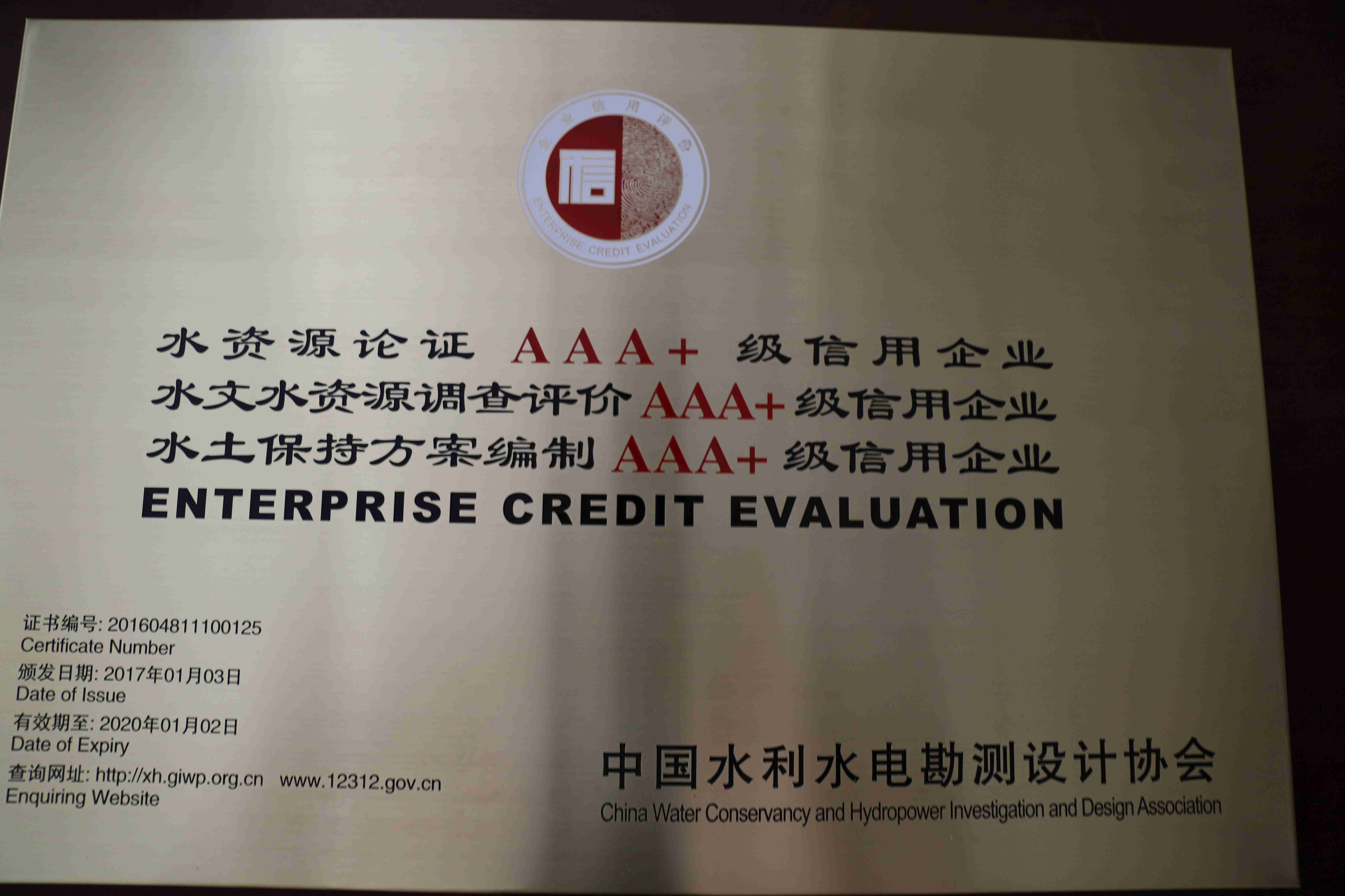 水利水電勘察設(shè)計(jì)咨詢3A+級(jí)信用企