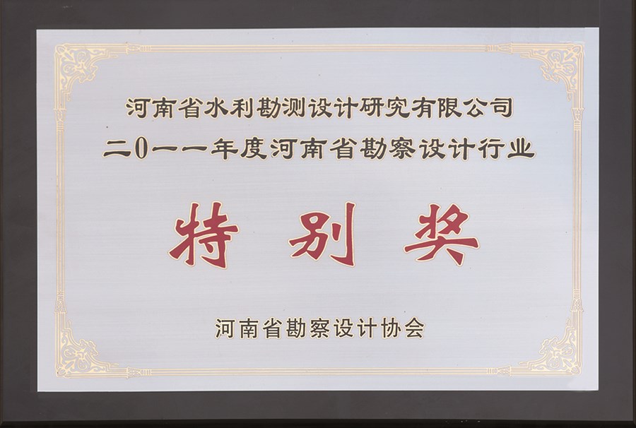 2011年度河南省勘察設(shè)計(jì)行業(yè)特別獎(jiǎng)