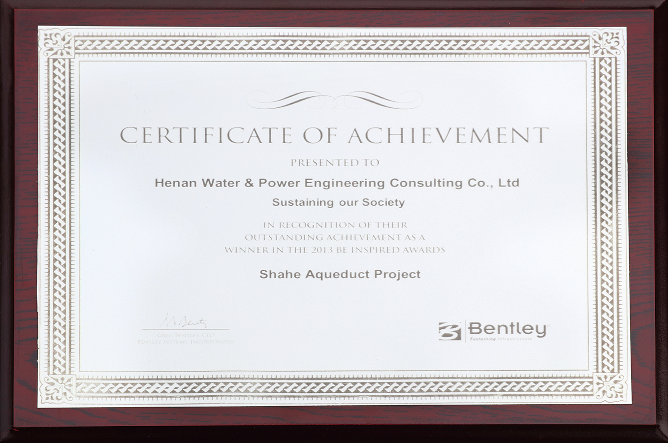 2013年度Be特別榮譽(yù)獎(jiǎng) 南水北調(diào)沙