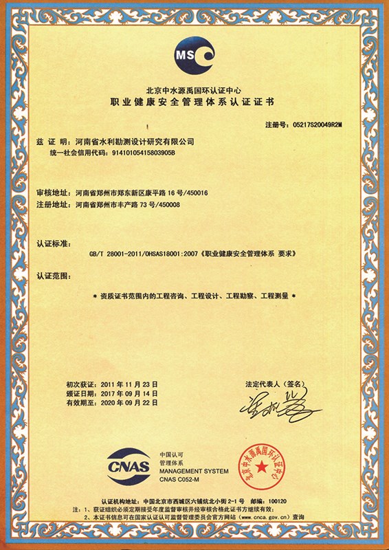職業(yè)健康安全管理體系認(rèn)證證書