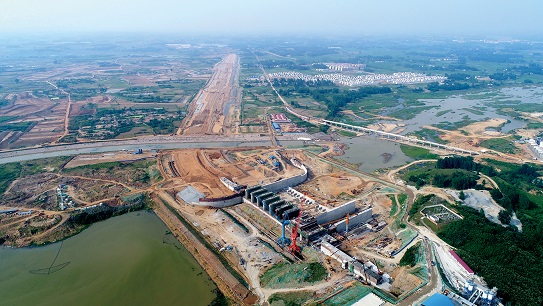 施工中的出山店水庫(kù)鳥(niǎo)瞰圖