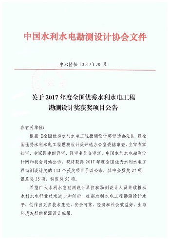 11月28日,中國水利水電勘測設(shè)計協(xié)會發(fā)布《關(guān)于2017年度全國優(yōu)秀水利水電工程勘測設(shè)計獎獲獎項目公告》 [中水協(xié)秘〔2017〕70號]文件,對獲得2017年度全國優(yōu)秀水利水電工程勘測設(shè)計獎的112個項目進(jìn)行了表彰。設(shè)計公司報送的《南水北調(diào)中線一期工程總干渠沙河渡槽段工程》和《南水北調(diào)中線一期工程總干渠沙河南~黃河南禹州和長葛段工程》兩個項目,均被評為金質(zhì)獎。