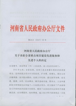 8月16日,河南省人民政府辦公廳發(fā)布《關(guān)于表彰全省重點(diǎn)項(xiàng)目建設(shè)先進(jìn)集體和先進(jìn)個(gè)人的決定》 [豫政辦〔2017〕92號(hào)]文件,對(duì)鄭州城建集團(tuán)投資有限公司等40個(gè)先進(jìn)集體和賈要偉等114名先進(jìn)個(gè)人予以表彰,設(shè)計(jì)公司被評(píng)為全省重點(diǎn)項(xiàng)目建設(shè)先進(jìn)集體。全文內(nèi)容如下: