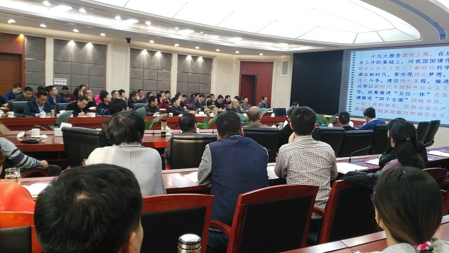 黨的十九大是全面建成小康社會(huì)決勝階段、中國(guó)特色社會(huì)主義發(fā)展關(guān)鍵時(shí)期召開的一次十分重要的大會(huì),在我黨發(fā)展史和社會(huì)主義發(fā)展階段具有里程碑意義。為了使廣大黨員深入領(lǐng)會(huì)習(xí)總書記新時(shí)代中國(guó)特色社會(huì)主義思想,進(jìn)一步推進(jìn)公司學(xué)習(xí)貫徹黨的十九大精神工作,11月8日下午,我公司舉行“學(xué)習(xí)貫徹十九大精神專題報(bào)告會(huì)”,邀請(qǐng)中共鄭州市委黨校張文化教授作輔導(dǎo)報(bào)告。公司董事長(zhǎng)、黨委書記翟淵軍主持會(huì)議,公司中層以上管理人員、黨員共計(jì)130余人參加會(huì)議。