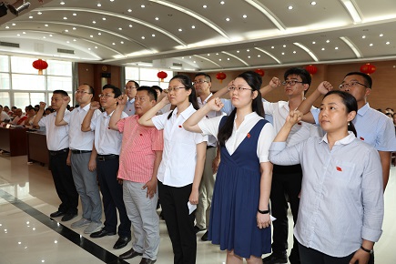 會議由公司黨委副書記、勘測公司總支書記、董事長趙健倉同志主持,黨委委員、設(shè)計公司總經(jīng)理朱太山同志宣讀了公司黨委表彰決定,工程規(guī)劃院黨支部等4個“五好”黨支部、楊華軍等35名優(yōu)秀黨員和任云峰等2名優(yōu)秀黨務工作者身披綬帶上臺領(lǐng)取了獎牌和榮譽證書;14名新黨員面對黨旗莊嚴宣誓;豫水國際黨支部的薛應科、勘測公司的周子東作為優(yōu)秀黨員代表在會上進行典型發(fā)言;工程設(shè)計二院的申黎平、勘測公司張慶功作為新黨員代表進行發(fā)言。