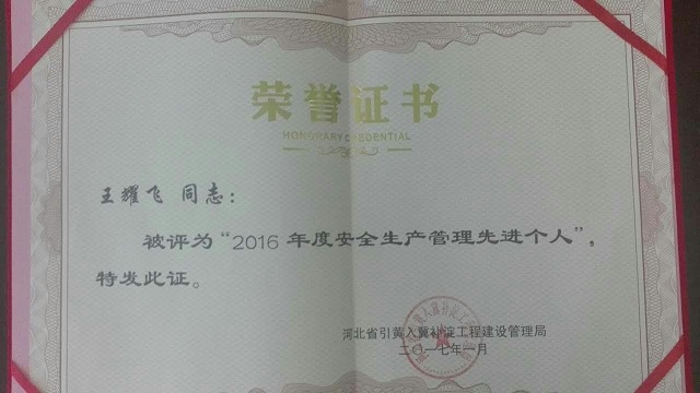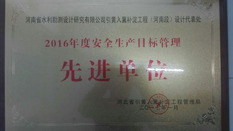 2017年3月1日上午,河北省引黃入冀補淀工程管理局對2016年度安全生產(chǎn)目標管理的先進單位和個人予以表彰,河南省水利勘測設(shè)計研究有限公司引黃入冀補淀工程(河南段)設(shè)計代表處被評為先進單位,設(shè)代處成員王耀飛被評為先進個人,設(shè)計二院副院長馮濤,設(shè)代處處長王偉,設(shè)代處成員張征浩、梁榮慧參會。