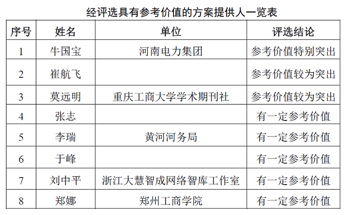 公司項目團隊按照客觀、公平、公正的原則,選出了參考價值特別突出的成果1名,報酬5000元;參考價值較為突出的成果2名,報酬各3000元;有一定參考價值的成果5名,報酬各1000元。項目團隊將于近期與評選出的具有參考價值的成果提供人聯(lián)系并按約定支付報酬。經(jīng)評選具有參考價值的方案投稿內(nèi)容詳見附件,特此公告。