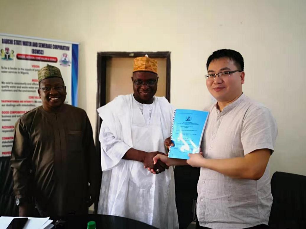 2019年3月11日,尼日利亞Bauchi州水務(wù)集團(tuán)與河南省水利勘測(cè)設(shè)計(jì)研究有限公司、尼日利亞Hansom工程咨詢有限公司聯(lián)營體(JV HWPC/HANSOM)簽訂了Gubi大壩除險(xiǎn)加固工程監(jiān)理服務(wù)合同。聯(lián)營體代表,國際工程院副院長(zhǎng)兼HANSOM工程咨詢公司副總經(jīng)理付海水與業(yè)主代表Bauchi水務(wù)集團(tuán)總經(jīng)理Engr.AminuAliyuGital在監(jiān)理合同上簽字,HANSOM咨詢公司總經(jīng)理助理陳大忠、大壩安全工程師田水泉出席簽字儀式。
