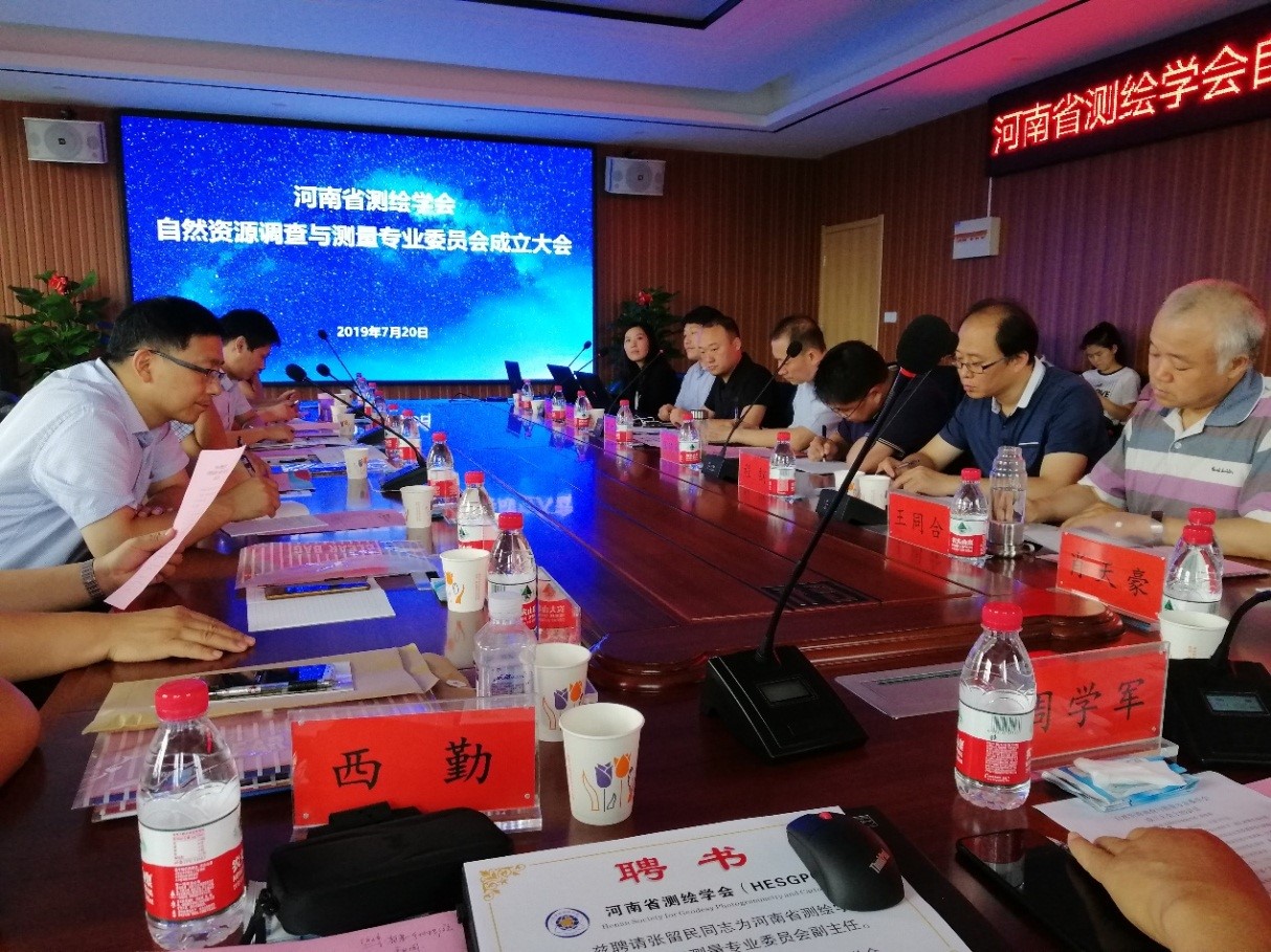 2019年7月20日,在焦作市河南省中緯測繪規(guī)劃信息工程有限公司,召開了河南省測繪學(xué)會自然資源調(diào)查與測量專業(yè)委員會成立大會。參加會議的專家學(xué)者有:信息工程大學(xué)、河南大學(xué)等五所高校專家教授、河南省測繪工程院等九家單位專家代表。會議還特邀航空攝影測量和遙感專業(yè)委員會主任委員,解放軍戰(zhàn)略支援部隊(duì)信息工程大學(xué)地理空間信息學(xué)院徐青教授參加。公司勘察院聶宗齋副總工參加了此次大會。