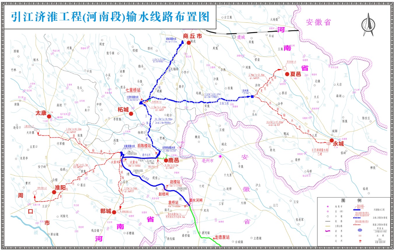 引江濟淮工程(河南段)輸水線路布置圖