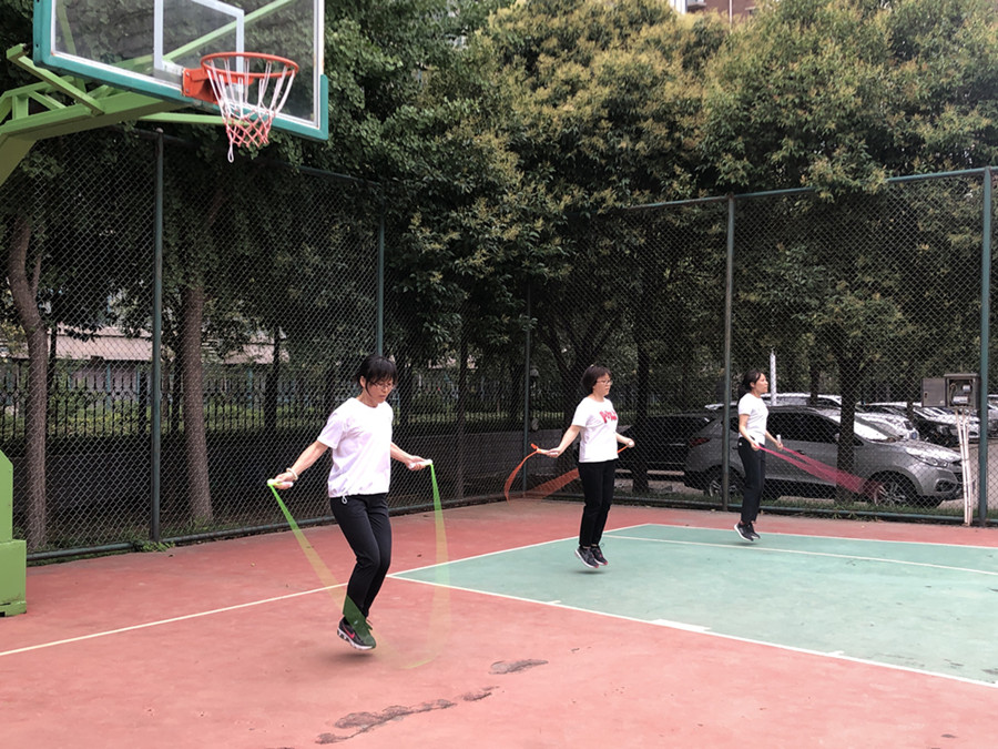 接下來(lái)跳繩比賽、呼啦圈比賽和定點(diǎn)投籃比賽同時(shí)進(jìn)行。