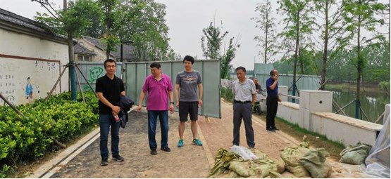 技術(shù)副總監(jiān)田耕(圖中左二)現(xiàn)場指導渦河堤頂排水工程施工