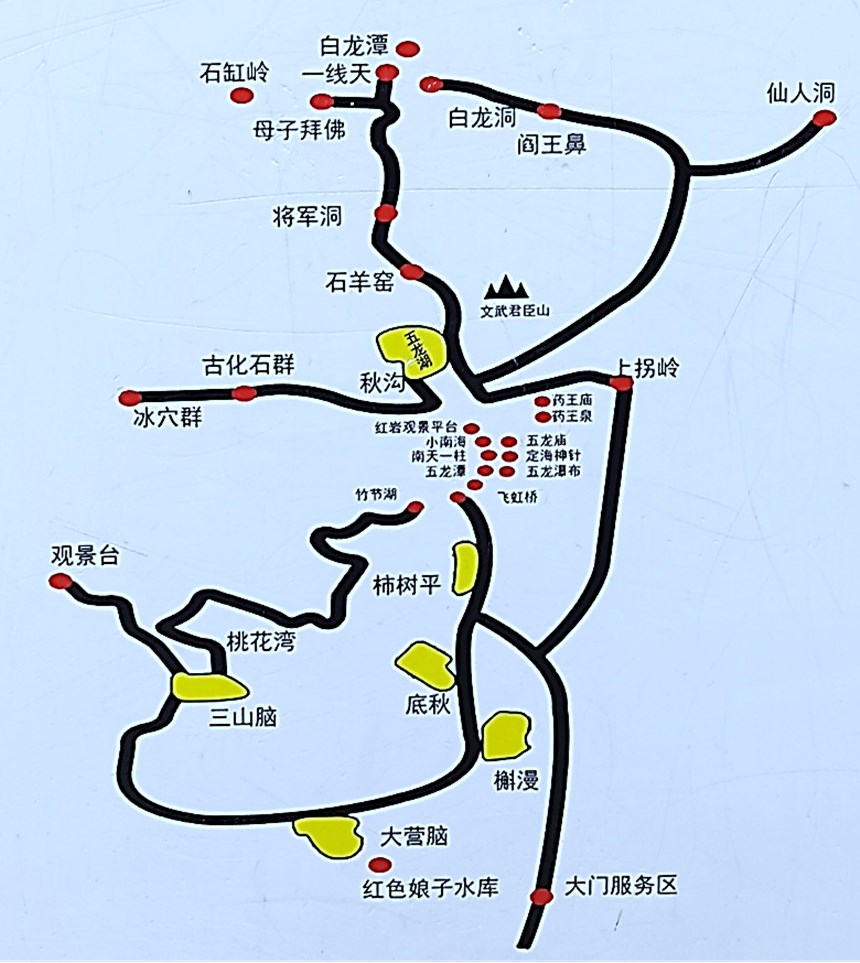 秋溝景區(qū)位于新鄉(xiāng)市輝縣南寨鎮(zhèn)境內(nèi),總面積14平方公里。景區(qū)三面環(huán)山,海拔800多米。景區(qū)內(nèi)山高林密,峽谷壁垂,主要有五龍峽、五龍?zhí)?、南天一柱、小南海、紅色娘子水庫、桃花灣等景點。因為過去溝內(nèi)盡是楸樹,故取名為楸溝,后簡化為秋溝。