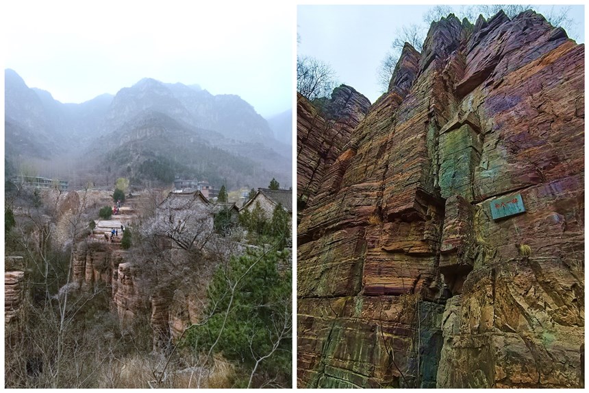五龍峽兩側(cè)是高入云端、峻峭的紅崖,谷底是碧綠的池水,一處“飛虹橋”橫在水面上,別有一番景致。進入谷底深處,前方一座直上直下的山峰“南天一注”屹立在谷底盡頭。大家沿著山體一側(cè)的“云梯”攀升,經(jīng)過“定海神針”、“小南海”、“系情谷”等景點,一直來到紅色娘子水庫大壩處,最終到達山頂平臺。