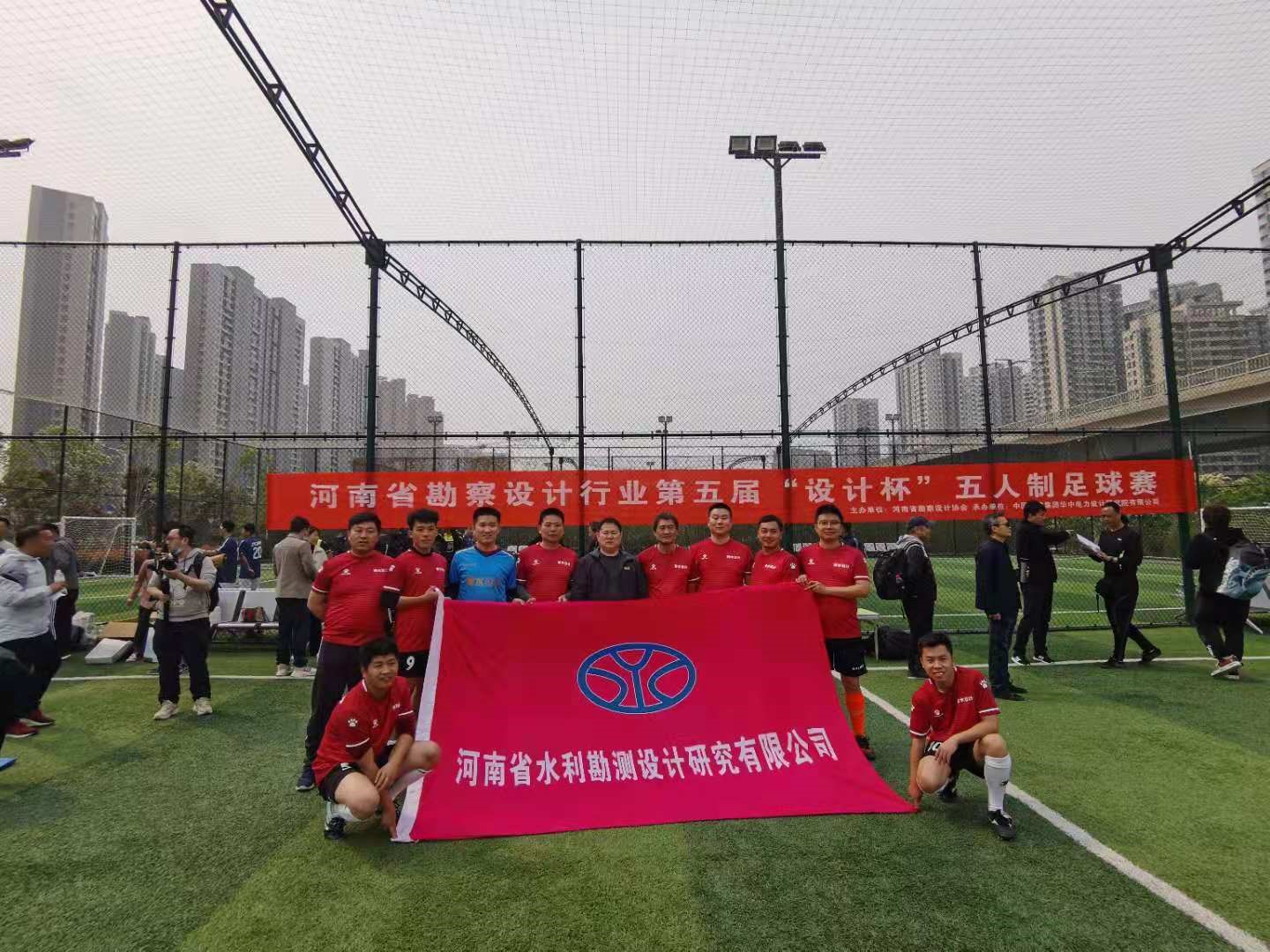 2021年4月7日,河南省勘察設(shè)計行業(yè)第五屆“設(shè)計杯”五人制足球賽揭幕戰(zhàn)在鄭州高鐵體育公園足球場打響。本屆比賽由中電建華中設(shè)計院隊承辦,共有18家駐鄭勘察設(shè)計單位參加,參賽隊數(shù)量創(chuàng)歷史新高。接到比賽通知后,公司工會積極組織協(xié)調(diào),各相關(guān)部門大力配合,抽調(diào)15名精銳隊員利用休息時間集訓(xùn)、積極備戰(zhàn)。