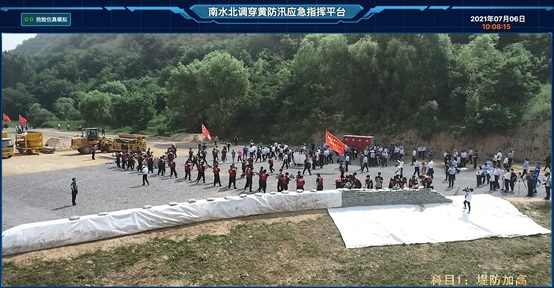豫水設(shè)計公司基于穿黃工程演練區(qū)域的高精度三維實(shí)景模型進(jìn)行堤防加高、管涌處理,洪水沖刷防護(hù)、坍塌防護(hù)、救援受困群眾、決口封堵、澇水抽排、應(yīng)急退水等8個演練科目的三維動畫制作,形象展示了各種險情發(fā)生原因、破壞過程和搶險施工方法等防洪專業(yè)知識。