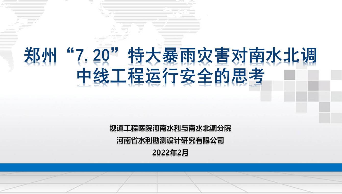 河南省水利勘測(cè)設(shè)計(jì)研究有限公司董事長(zhǎng)翟淵軍,《鄭州“7.20”特大暴雨災(zāi)害對(duì)南水北調(diào)中線工程運(yùn)行安全的思考》;