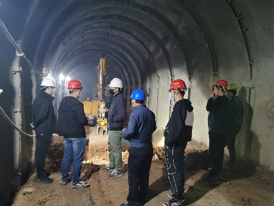 公司設(shè)計代表(左三)與參建各方現(xiàn)場會商隧洞內(nèi)襯結(jié)構(gòu)方案優(yōu)化