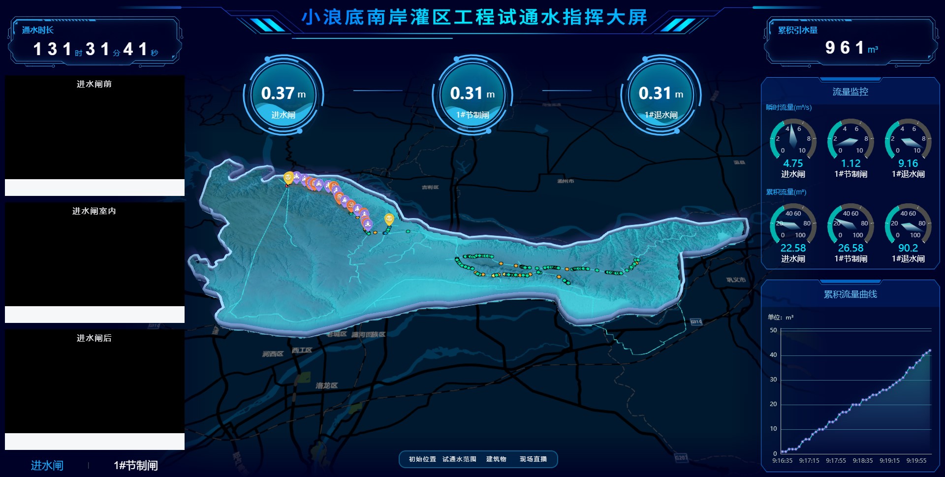 為更好地支持本次工程試通水,公司數(shù)字化創(chuàng)新技術(shù)團(tuán)隊基于BIM+GIS+無人機(jī)傾斜攝影+物聯(lián)網(wǎng)技術(shù),構(gòu)建灌區(qū)工程數(shù)字沙盤,實現(xiàn)工程全方位數(shù)字化影射;同時研發(fā)了工程試通水指揮大屏,接入視頻監(jiān)控、水位流量監(jiān)測、無人機(jī)等前端感知設(shè)備,以實時數(shù)據(jù)驅(qū)動、在線視頻追蹤等方式,實時掌握工程試通水運行狀態(tài),全力保障工程試通水安全進(jìn)行。