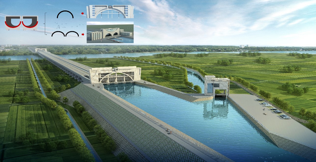 南水北調(diào)中線工程總干渠控制性建筑物有其固有的自身特點(diǎn),其結(jié)構(gòu)布局須滿足水工建筑物設(shè)計(jì)規(guī)范,以及閘、機(jī)、泵等設(shè)備安裝的要求。建筑景觀設(shè)計(jì)專業(yè)需要與其他相關(guān)專業(yè)進(jìn)行多方面、多頻次的對(duì)接與協(xié)調(diào),將建筑景觀設(shè)計(jì)方案與水工建筑設(shè)計(jì)巧妙結(jié)合,達(dá)到“實(shí)用、經(jīng)濟(jì)、美觀”的效果。