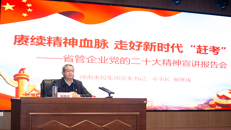 2022年12月12日下午,公司黨委書記、董事長翟淵軍帶領(lǐng)公司班子成員現(xiàn)場參加了水投集團(tuán)舉辦的二十大精神報告會,各支部也組織支部黨員在線參加了學(xué)習(xí)。會上,水投集團(tuán)黨委書記、董事長楊繼成作了《賡續(xù)精神血脈 走好新時代“趕考”路》的報告。報告從大會主題及主要成果、過去5年工作和新時代十年偉大變革、馬克思主義中國化時代化、中國式現(xiàn)代化、全面建設(shè)社會主義現(xiàn)代化國家的目標(biāo)任務(wù)、堅持黨的全面領(lǐng)導(dǎo)和全面從嚴(yán)治黨、應(yīng)對風(fēng)險挑戰(zhàn)、傳承弘揚(yáng)紅旗渠精神等8個方面對黨的二十大精神進(jìn)行了全面解讀和輔導(dǎo)。報告緊扣主題、內(nèi)涵豐富、邏輯嚴(yán)謹(jǐn),對廣大黨員準(zhǔn)確把握二十大精神有很強(qiáng)的啟迪作用,對進(jìn)一步落實落細(xì)二十大精神有很強(qiáng)的指導(dǎo)意義。