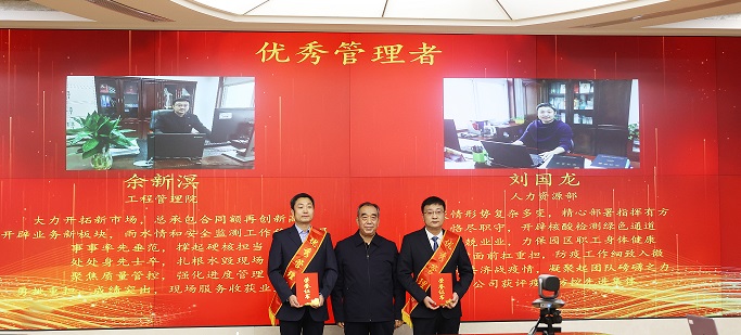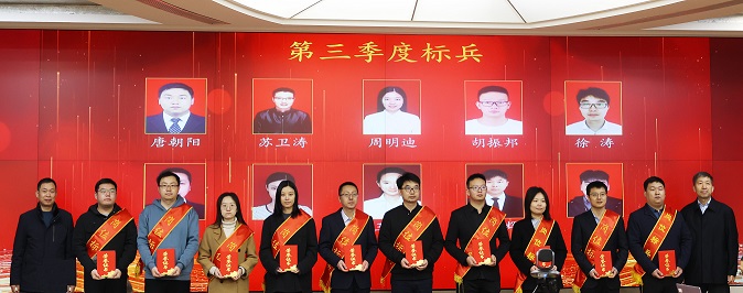 公司總經理朱太山宣讀《關于表彰2022年度優(yōu)秀團隊、總經理特別貢獻獎、優(yōu)秀管理者以及崗位標兵的決定》。2022年度共評選出優(yōu)秀團隊1個、總經理特別貢獻獎1個、優(yōu)秀管理者2名、年度崗位標兵6名、季度崗位標兵39名。與會公司領導為獲得表彰的團隊和個人頒發(fā)證書,并合影留念。