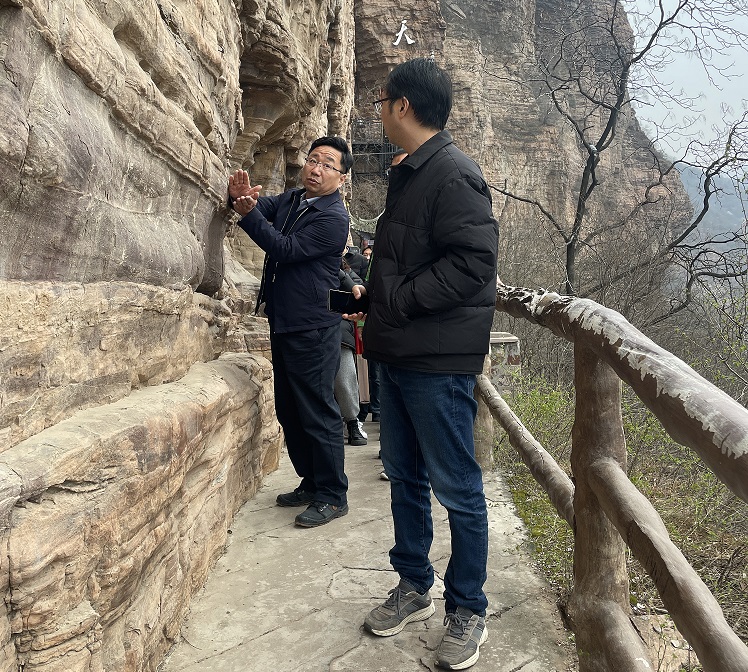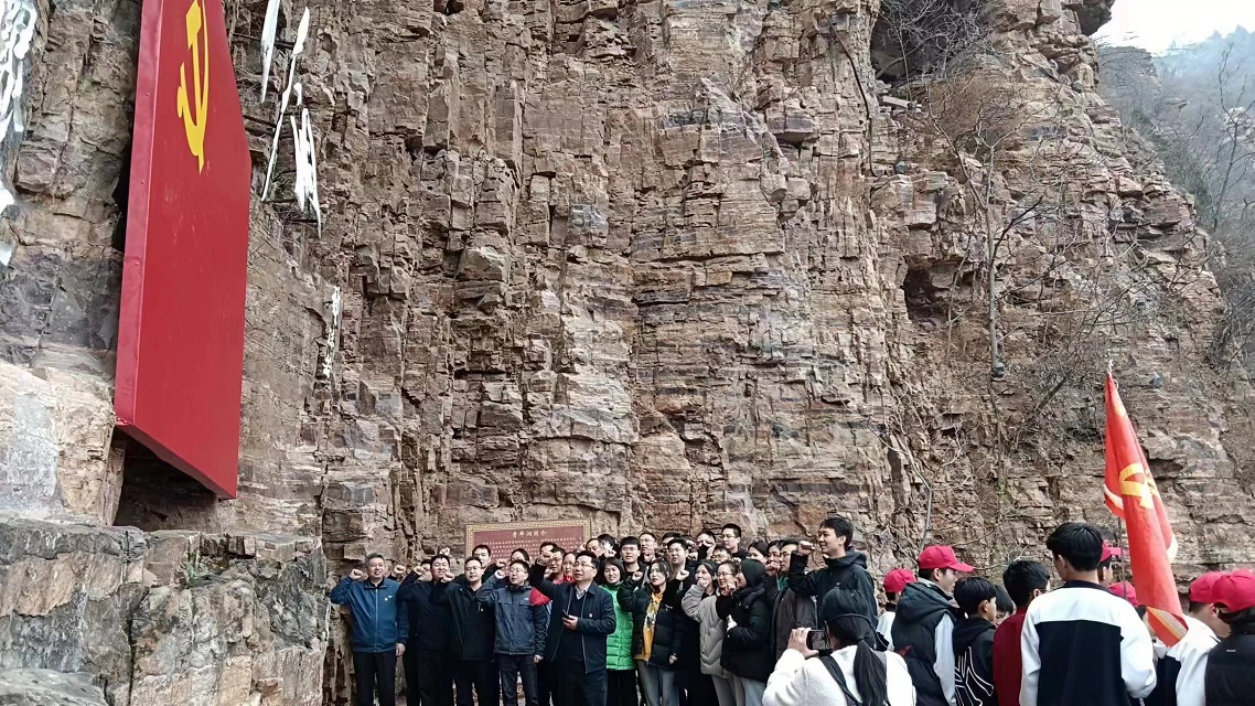 在青年洞,大家沿著“創(chuàng)業(yè)路”拾級而上,追憶著半個多世紀(jì)前先輩們在此奮斗的足跡:在紅旗渠修建過程中,300名青年組成突擊隊,經(jīng)過1年5個月的奮戰(zhàn),將地勢險要、石質(zhì)堅硬的巖壁鑿?fù)?,這個輸水隧洞被命名為青年洞。青年洞現(xiàn)場,面對鮮艷的五星紅旗,全體黨員舉起右拳,在支部書記楊華軍的帶領(lǐng)下,重溫入黨誓詞,堅定了我們緊跟總書記的步伐,奮進(jìn)新征程的信念和決心。