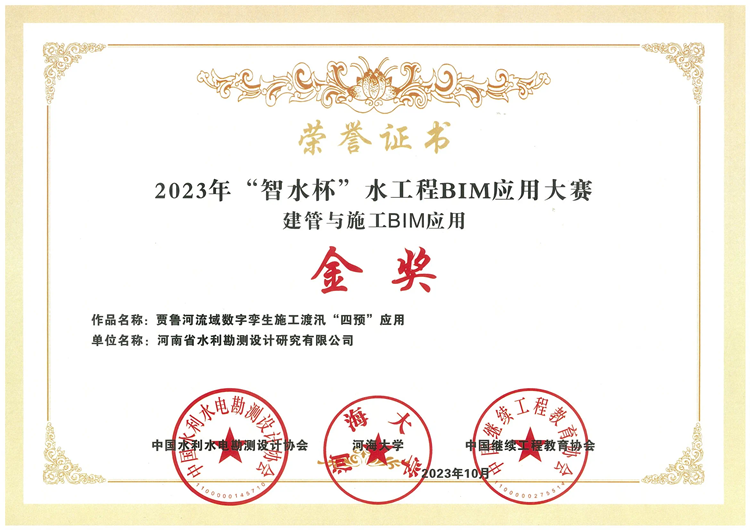 近日,2023年“智水杯”水工程BIM應(yīng)用大賽獲獎(jiǎng)項(xiàng)目公示。豫水設(shè)計(jì)公司申報(bào)項(xiàng)目《賈魯河流域數(shù)字孿生施工度汛“四預(yù)”應(yīng)用》獲建管與施工BIM應(yīng)用金獎(jiǎng);《水工程智慧建造+數(shù)字化運(yùn)維關(guān)鍵場(chǎng)景數(shù)字孿生應(yīng)用》獲全生命期BIM應(yīng)用銀獎(jiǎng)。