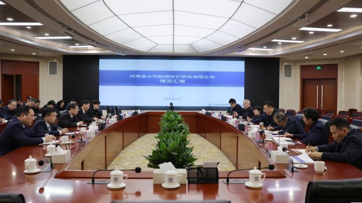 周貴恒一行參觀了豫水設(shè)計公司院史陳列廳,聽取了豫水設(shè)計公司整體工作開展情況匯報,并與公司領(lǐng)導班子、各院部主要負責同志進行座談。