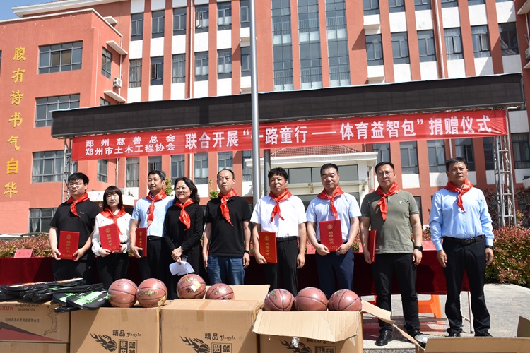 4月26日,鄭州市慈善總會、鄭州市土木工程協(xié)會在登封市唐莊鎮(zhèn)第二小學(xué)聯(lián)合開展“一路同行——體育益智包”捐贈儀式。鄭州市慈善總會項目部部長郭偉,登封市唐莊鎮(zhèn)副鎮(zhèn)長李泉貴,豫水設(shè)計公司副總經(jīng)理劉國龍和各受邀企業(yè)代表參加儀式。