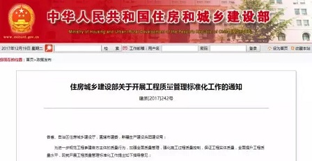 近日,住建部下發(fā)《住房城鄉(xiāng)建設部關(guān)于開展工程質(zhì)量管理標準化工作的通知》(以下簡稱《通知》)。提出到2020年底,要力爭“全面推行工程質(zhì)量管理標準化”。