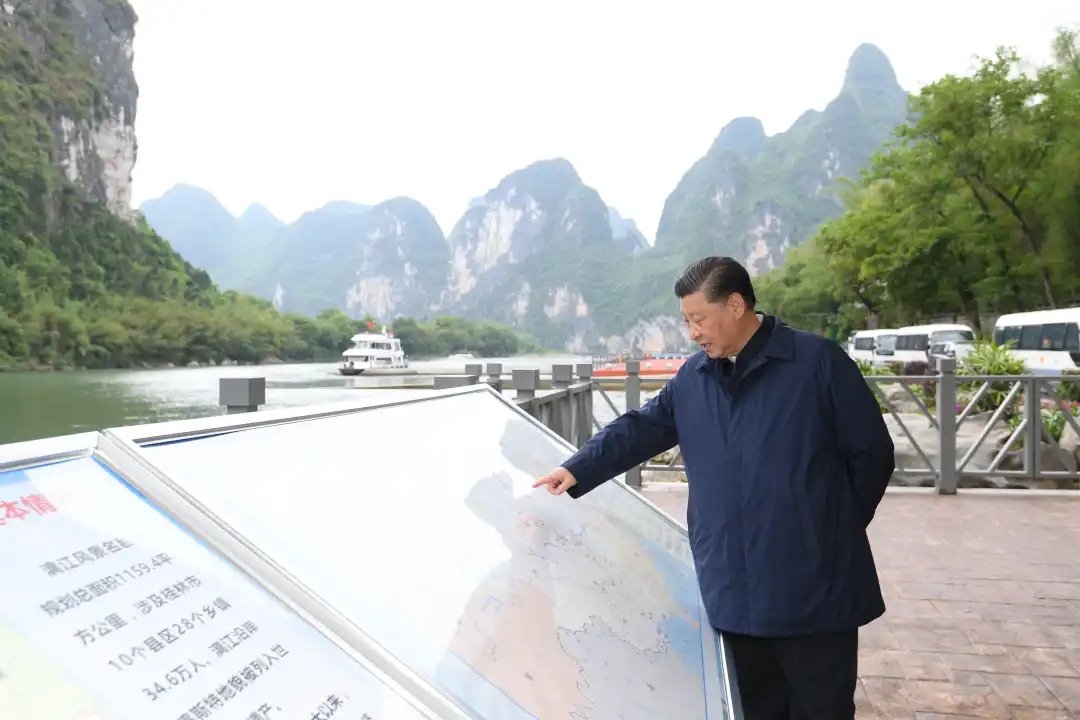 4月25日下午,正在廣西考察調(diào)研的習(xí)近平總書記來到漓江陽朔段,實地了解漓江流域綜合治理、生態(tài)保護(hù)等情況。