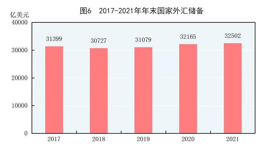 年末國家外匯儲(chǔ)備32502億美元,比上年末增加336億美元。全年人民幣平均匯率為1美元兌6.4515元人民幣,比上年升值6.9%。
