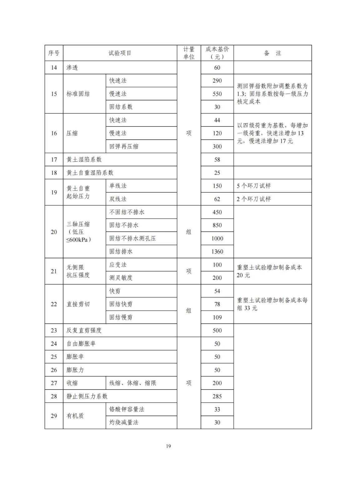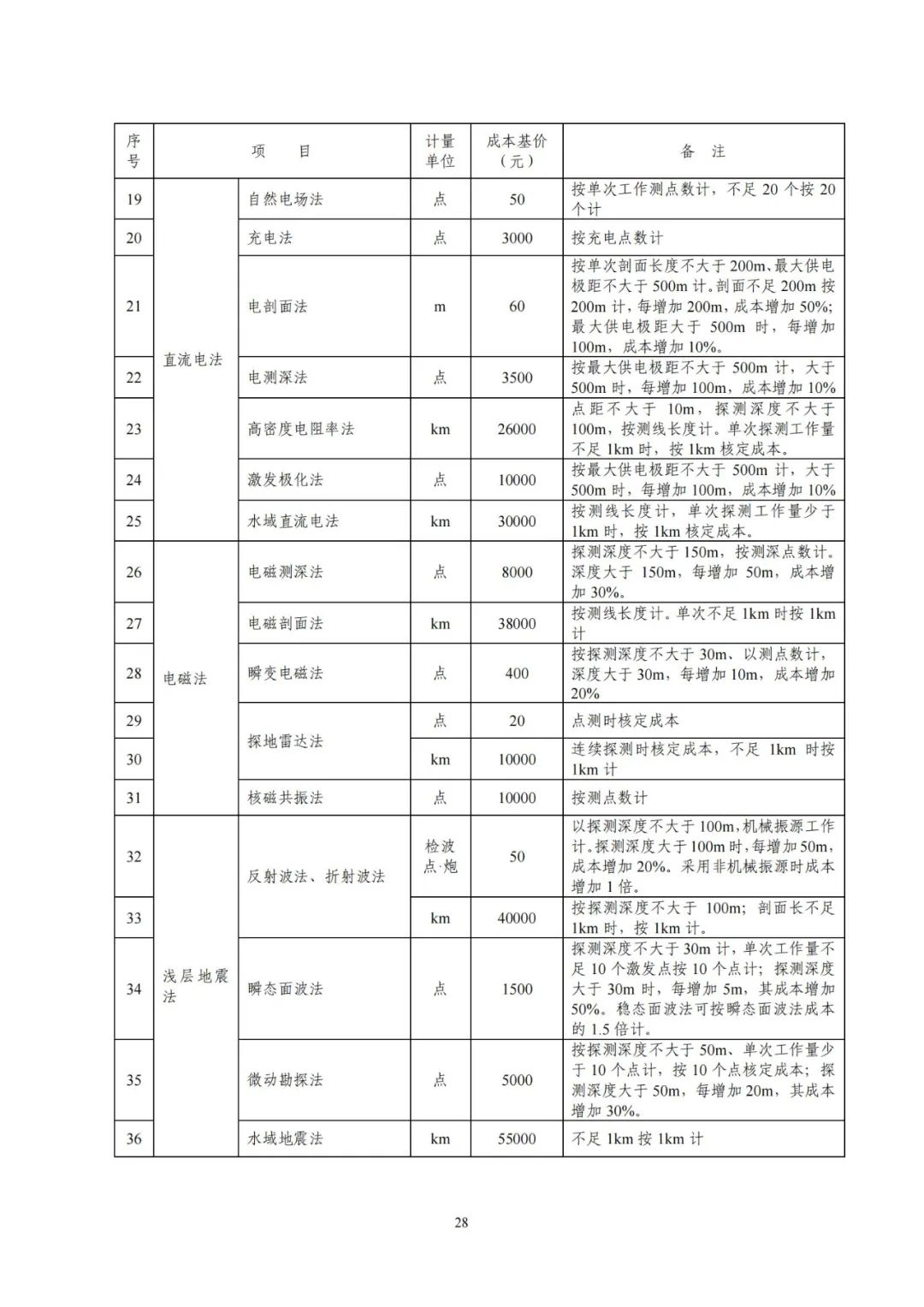 《要素信息》分為八章,相關(guān)成本測(cè)算分為工程費(fèi)法(其包含巖土工程勘察、巖土工程勘察咨詢與監(jiān)理、巖土工程設(shè)計(jì)和專業(yè)工程咨詢)、實(shí)物工作量法(其包含工程地質(zhì)測(cè)繪與遙感地質(zhì)解譯、巖土工程勘探與取樣、巖土工程試驗(yàn)/檢測(cè)與監(jiān)測(cè)、工程測(cè)量、水文地質(zhì)勘察)及人工日法三類。除傳統(tǒng)的巖土工程試驗(yàn)、測(cè)試和工程測(cè)量項(xiàng)目外,實(shí)物工作成本包括了土的易溶鹽及導(dǎo)熱系數(shù)等室內(nèi)試驗(yàn)、多功能數(shù)字式孔壓靜力觸探試驗(yàn)、溫度測(cè)量等工程物探、海洋和內(nèi)陸水域測(cè)量、無人機(jī)航空攝影測(cè)量、地面三維激光掃描測(cè)量、規(guī)劃測(cè)量等以新技術(shù)方法為主的專業(yè)技術(shù)服務(wù)項(xiàng)目。