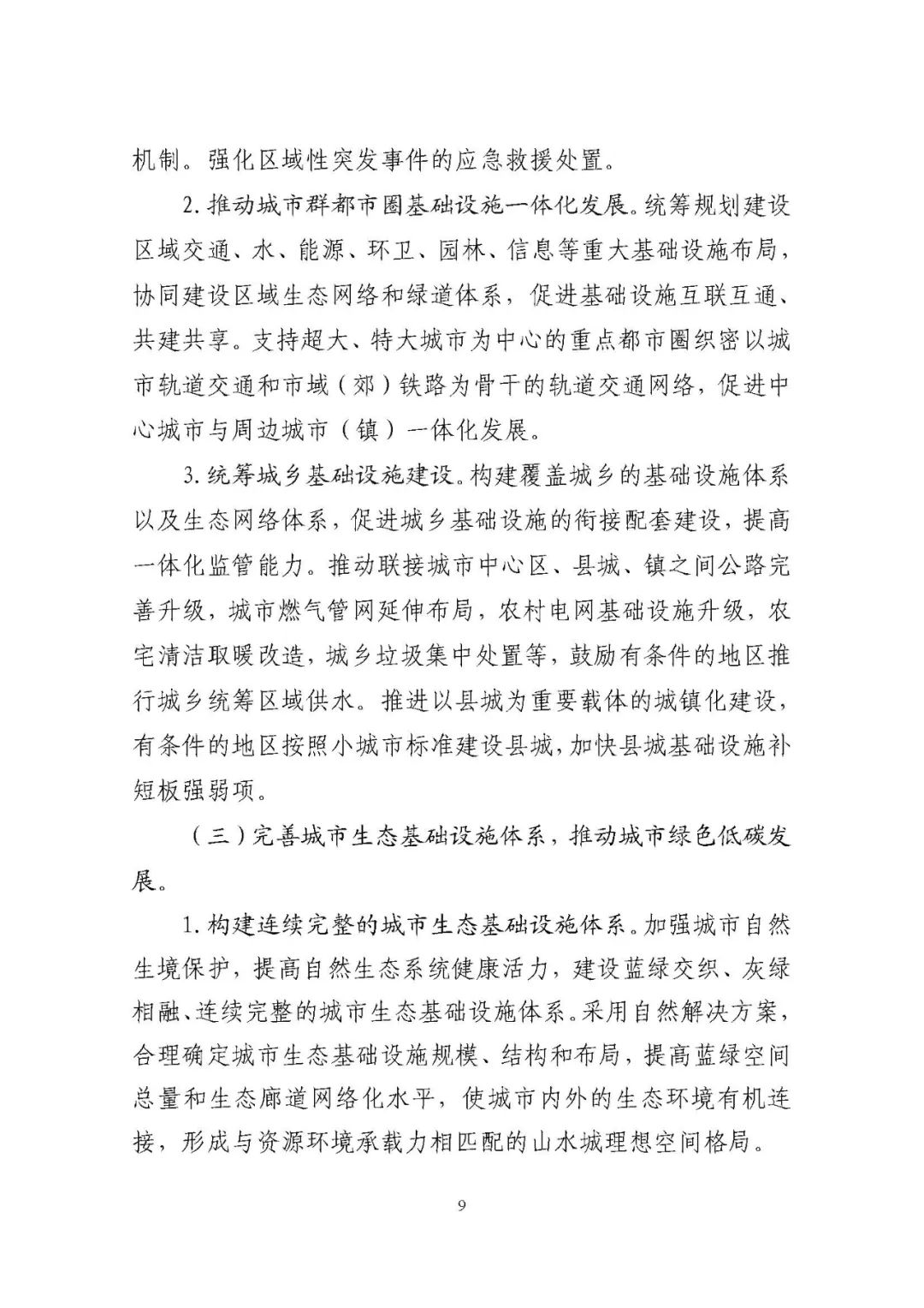 《規(guī)劃》圍繞構(gòu)建系統(tǒng)完備、高效實用、智能綠色、安全可靠的現(xiàn)代化基礎設施體系,提出4方面重點任務。一是推進城市基礎設施體系化建設,增強城市安全韌性能力;二是推動城市基礎設施共建共享,促進形成區(qū)域與城鄉(xiāng)協(xié)調(diào)發(fā)展新格局;三是完善城市生態(tài)基礎設施體系,推動城市綠色低碳發(fā)展;四是加快新型城市基礎設施建設,推進城市智慧化轉(zhuǎn)型發(fā)展。